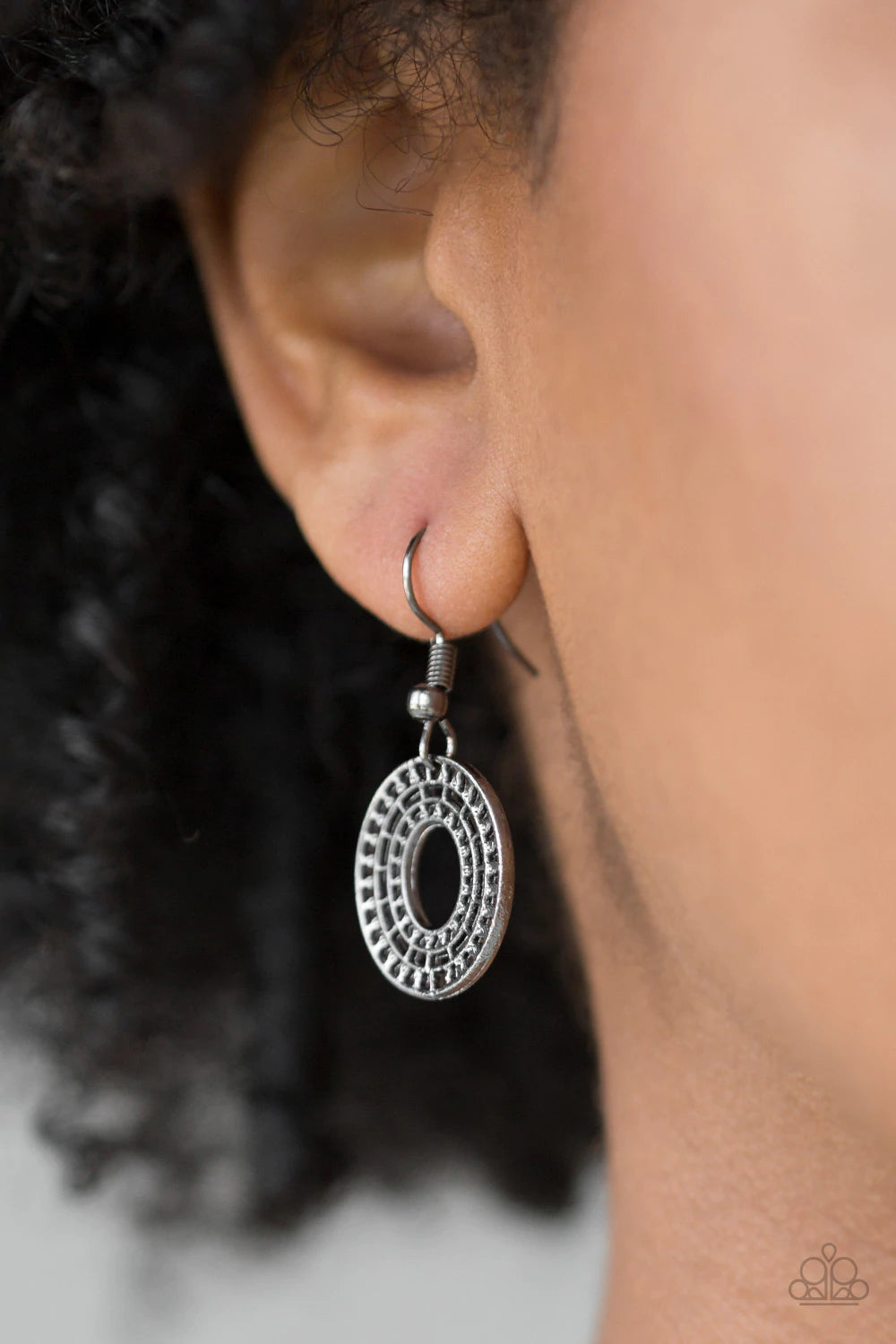 Radiating with circular details, airy oval frames link below the collar for a casual look. Features an adjustable clasp closure.