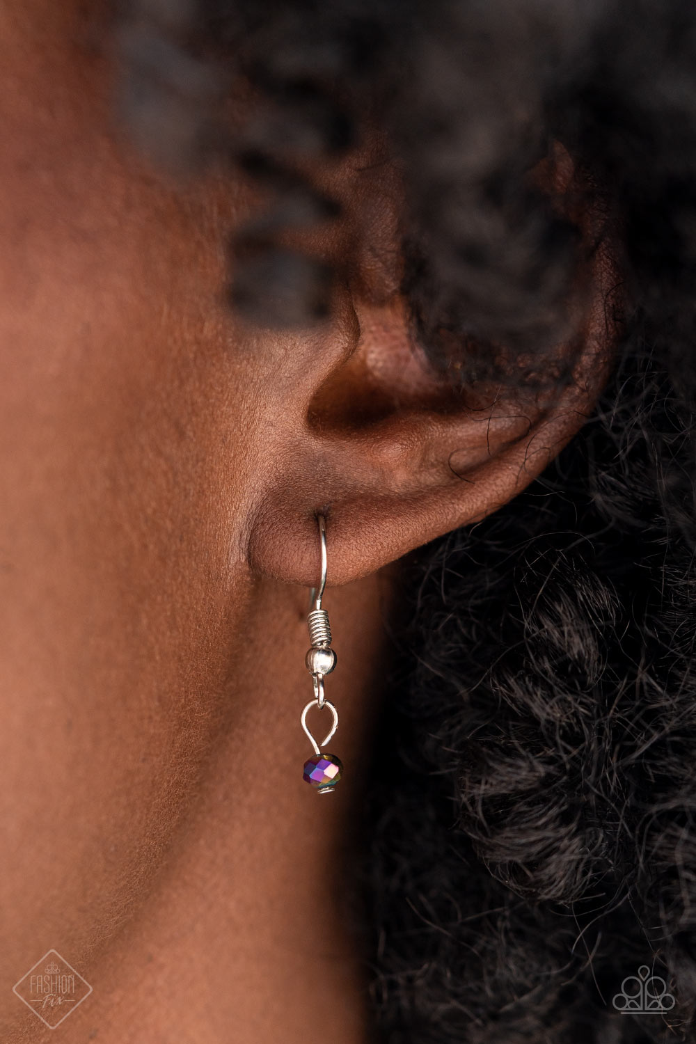 Dotted in a single silver stud, a star-stamped silver disc glistens at the bottom of a classic silver chain. Infused with faceted silver beads, a stellar collection of oil spill crystal-like beads glides along a flat silver chain, resulting in out-of-this-world layers below the collar. Features an adjustable clasp closure.